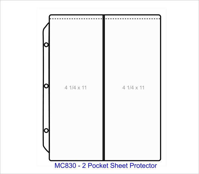 2 Pocket Sheet Protector - Pocket Capacity 4 1/4" x 11" - M830
