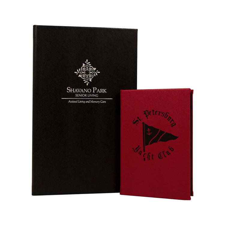 Elevate your formal look with our Tuxedo Leather menu covers. Crafted in smooth tuxedo leather with a glossy, flat grain finish, these padded covers provide a luxurious touch and timeless style. Enhance your diners' experience with the classic, distinguished look of these elegant menu covers.