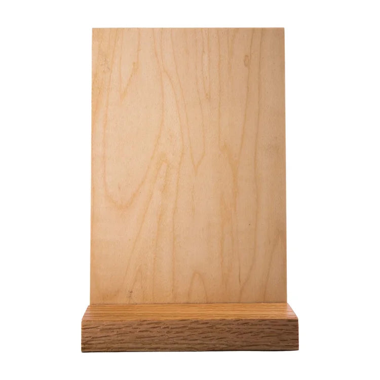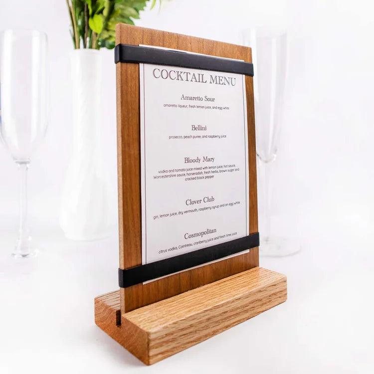 If you want to display your beverage or dessert menus in a creative way, then our rustic table talkers are perfect for you. These table talkers are crafted with authentic wood, making them extremely durable and long lasting. These signs make it easy to display information to your customers without taking too much space on your table, and its double-sided design allows you to feature twice the content. Our talkers can hold your menus with black bands, allowing you to change your menus with ease.