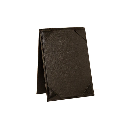 These stylish, hardback A-frame table tents can be made with a variety of materials, and comes with a black card with black album style corners. Its bi-fold look enables you to feature twice the content. Its collapsible design makes it easy to store, and it comes with a bottom ribbon that connects both sides for added stability.